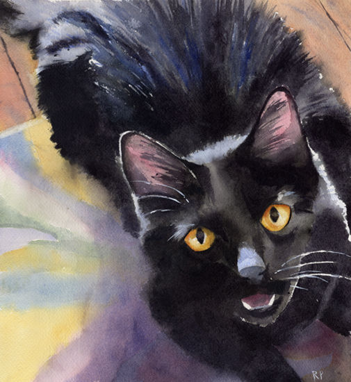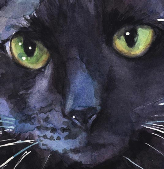 Black Cat Watercolor Print Art "Sadie Soft"
